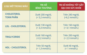 – Chỉ số Cholesterol toàn phần < 5,1 mmol/L (hoặc <200 mg/dL): cho biết tình trạng bình thường, nguy cơ mắc bệnh động mạch vành rất thấp.