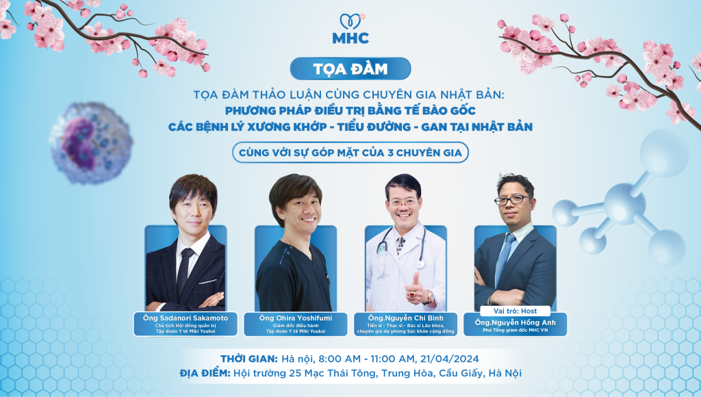 Buổi tọa đàm “Phương pháp điều trị bằng Tế bào gốc các bệnh lý Xương khớp – Tiểu đường – Gan cùng các chuyên gia hàng đầu Nhật Bản & Việt Nam” đã được tổ chức thành công tại MHC VIỆT NAM. Trong buổi tọa đàm, bác sĩ Nguyễn Chí Bình – Tiến sĩ, Thạc […]